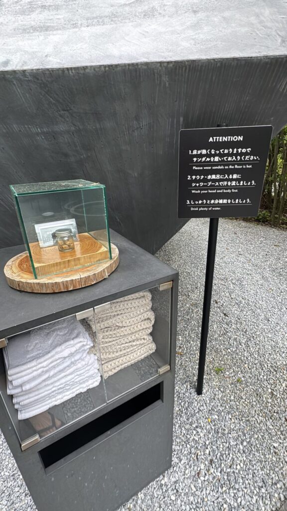 ⚠️ 要注意:サウナ室の床はかなりの高温です。入室時は必ずサンダルを履いてください。私たち夫婦も足の熱さを感じましたし、他の利用者の方も「熱い」とおっしゃっていました。ホテル側も入口のボードで注意喚起しています。