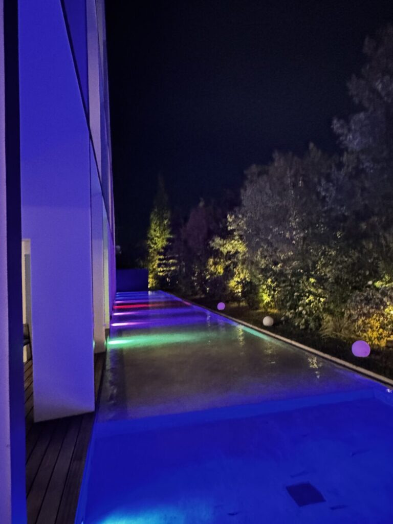 夜のプールは昼間とはまったく異なる雰囲気になります。カラフルなライトが水面を照らし、大人のリゾート感が漂います。温水仕様なので夜でも快適に入れます。4月という時期でも若いカップルが楽しんでいました。ナイトプールとしての完成度は高いと思います。