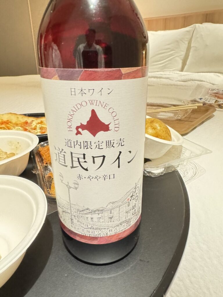 さすがに飲みませんでしたが、道内限定販売のワインを見つけて、まんまとキャッチフレーズに引っかかり購入。「やや辛口」と書いてありますが、普段チリワインの辛口を頂いている私達夫婦にとっては甘めな感じでした。