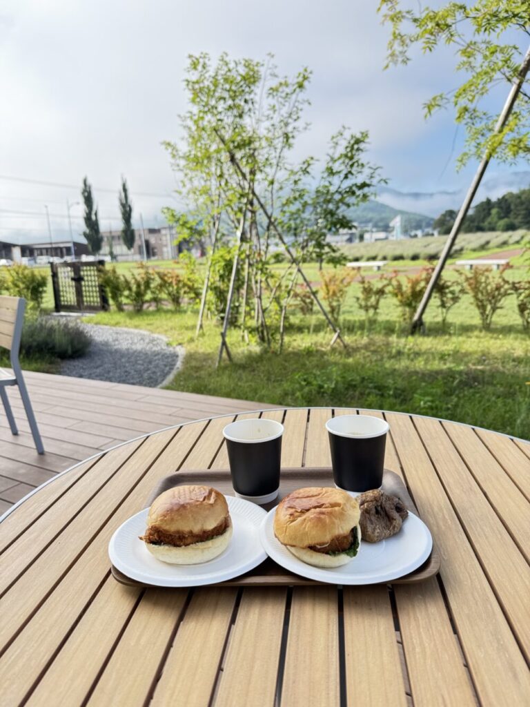 雲海テラスを楽しんだあとは一度ホテルに戻って、1階のロビーラウンジで前夜に購入したパンを温め、コーヒーをいただきながら 静かな外のテラス席で迎える朝が格別でした。