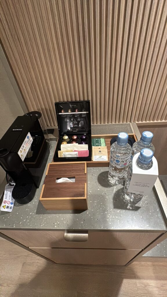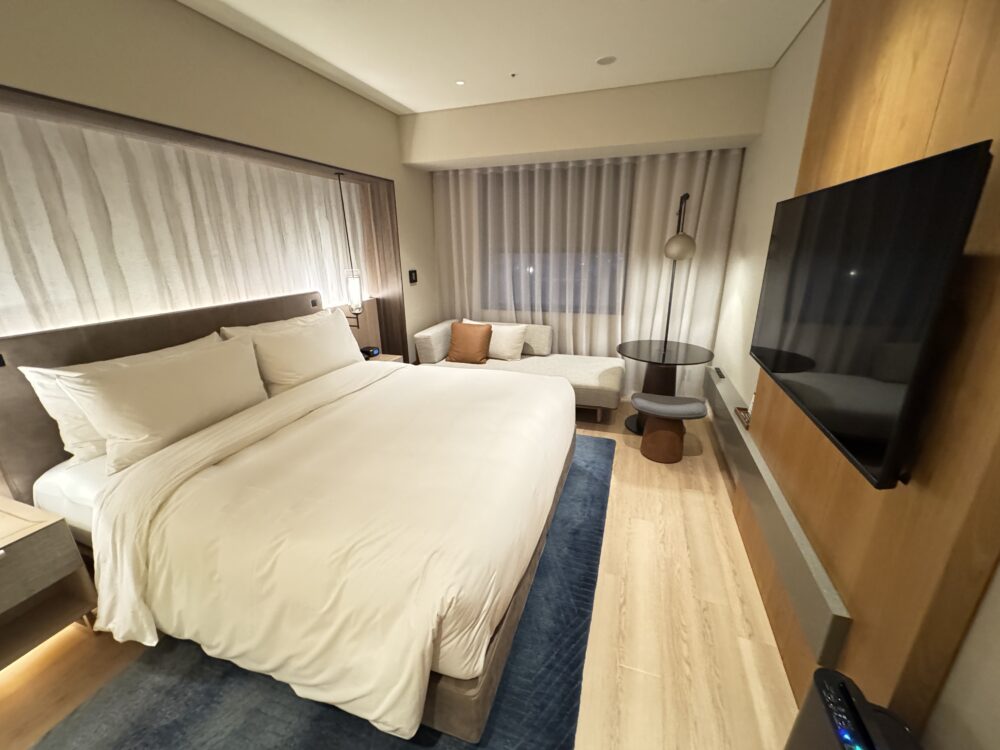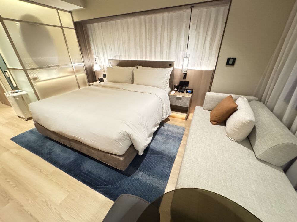 今回は、キングベッドのデラックスルームで設備の配置がフィールドバイマリオットと似てはいますが、広さが全然違いゆったりとくつろぐことができます。