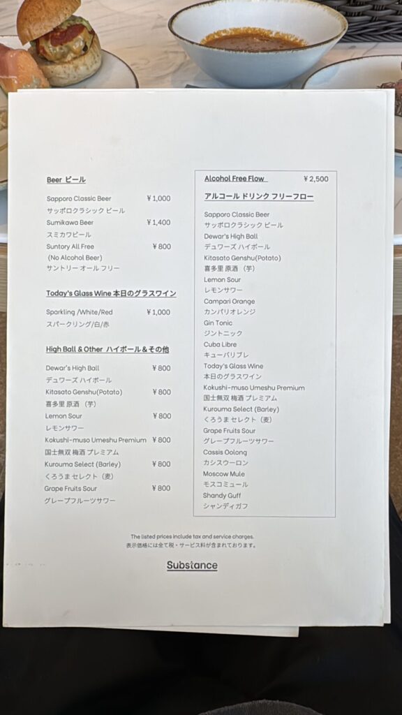 ランチは北海道食材を利用したビュッフェスタイル。今回はMarriott Bonvoyのプラチナ特典でランチは無料(3600円/人)。