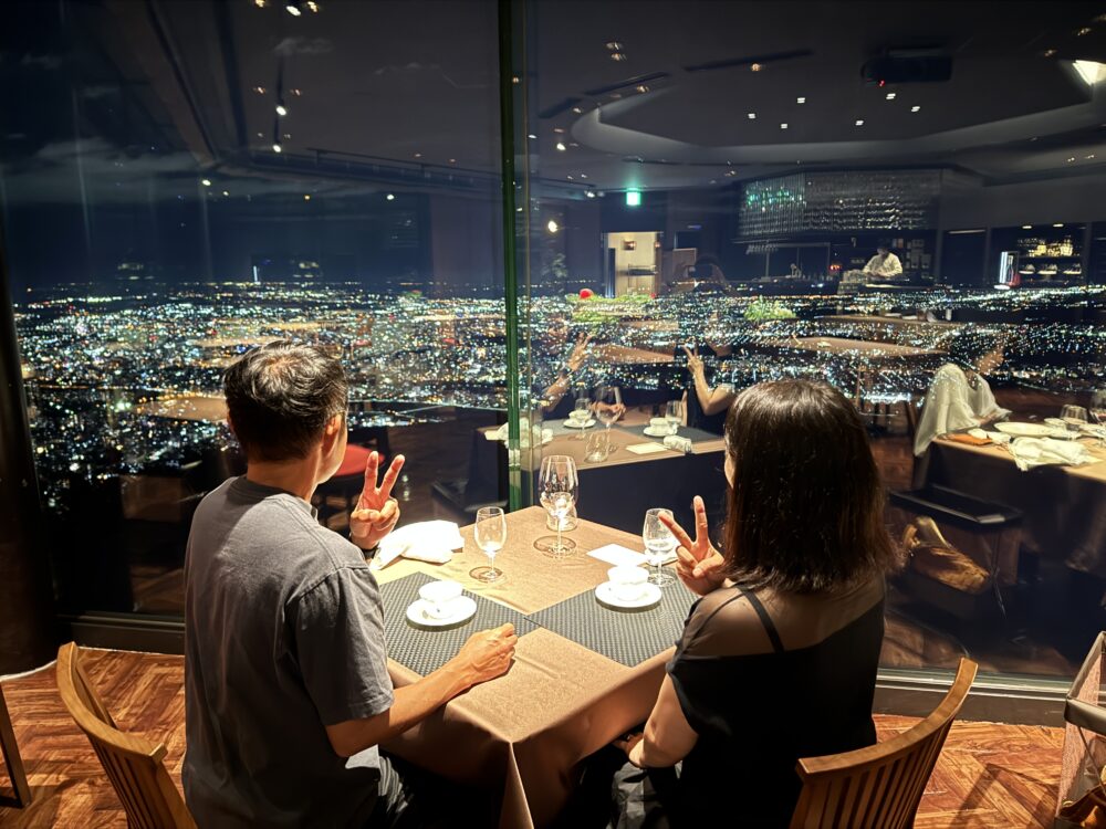 本日のメインイベントは、札幌の夜景を楽しみながら美味しいディナーをいただくこと。