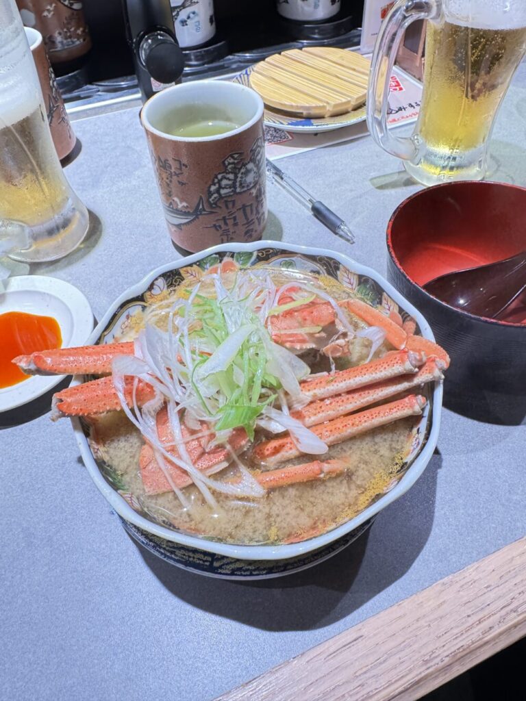 普段食べることができない「北海道ならでは」を意識して「オオズワイ蟹鉄砲汁」を妻が注文し大満足な表情で頂いておりました。