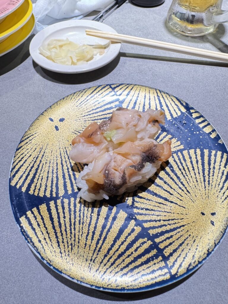 ただ、他のネタも美味しく、貝好きの私が気に入ったのは「活きつぶ(つぶ貝)」です。普段食べている回転寿司チェーン店の「つぶ貝」とは似て非なるものでした。